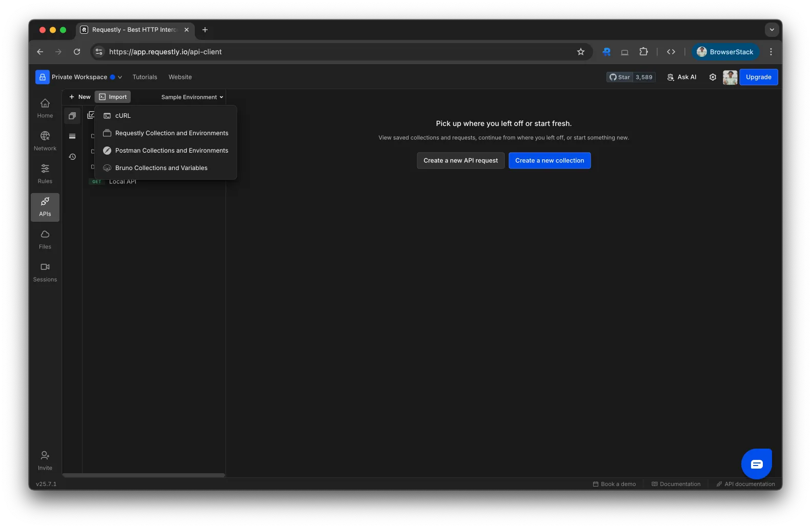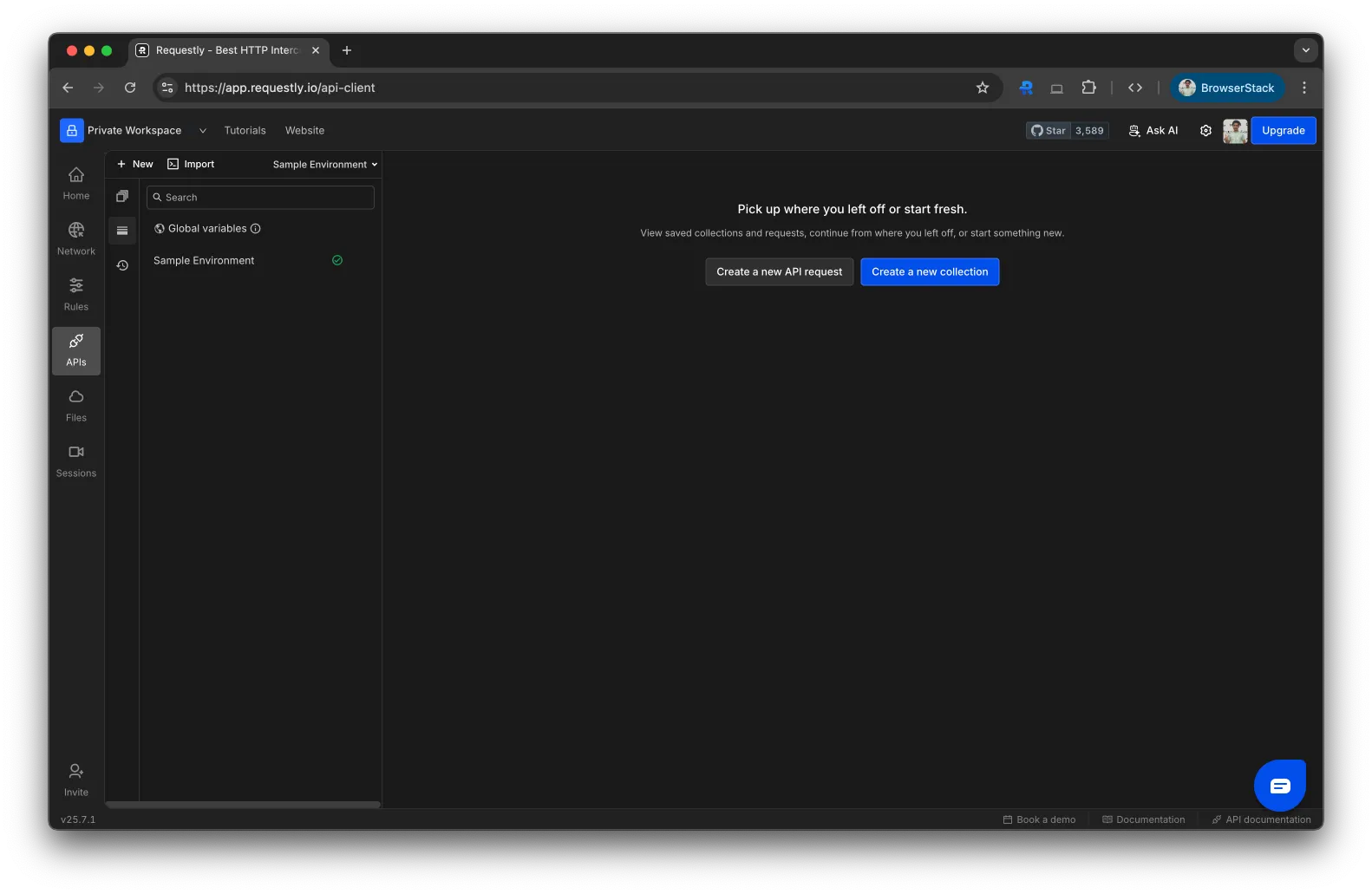 Download Requestly and open the dashboard. From the sidebar, navigate to APIs.