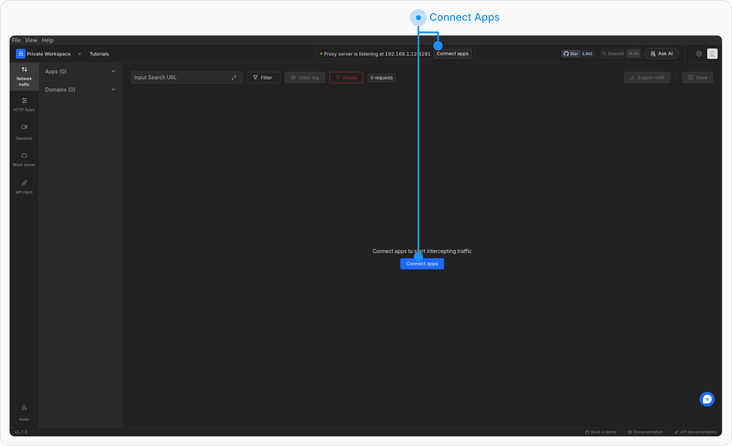 Proxy Hostname: Use the IP shown in the Requestly Desktop App (e.g.,