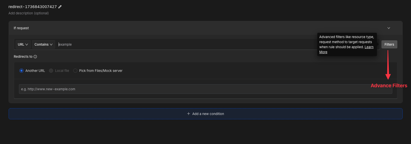 - Resource Type: Specify the type of resource to limit matching to particular requests. For instance, path-level matching can apply to both CSS and JavaScript files, but advanced filters allow narrowing it down to only CSS or JavaScript as needed.
