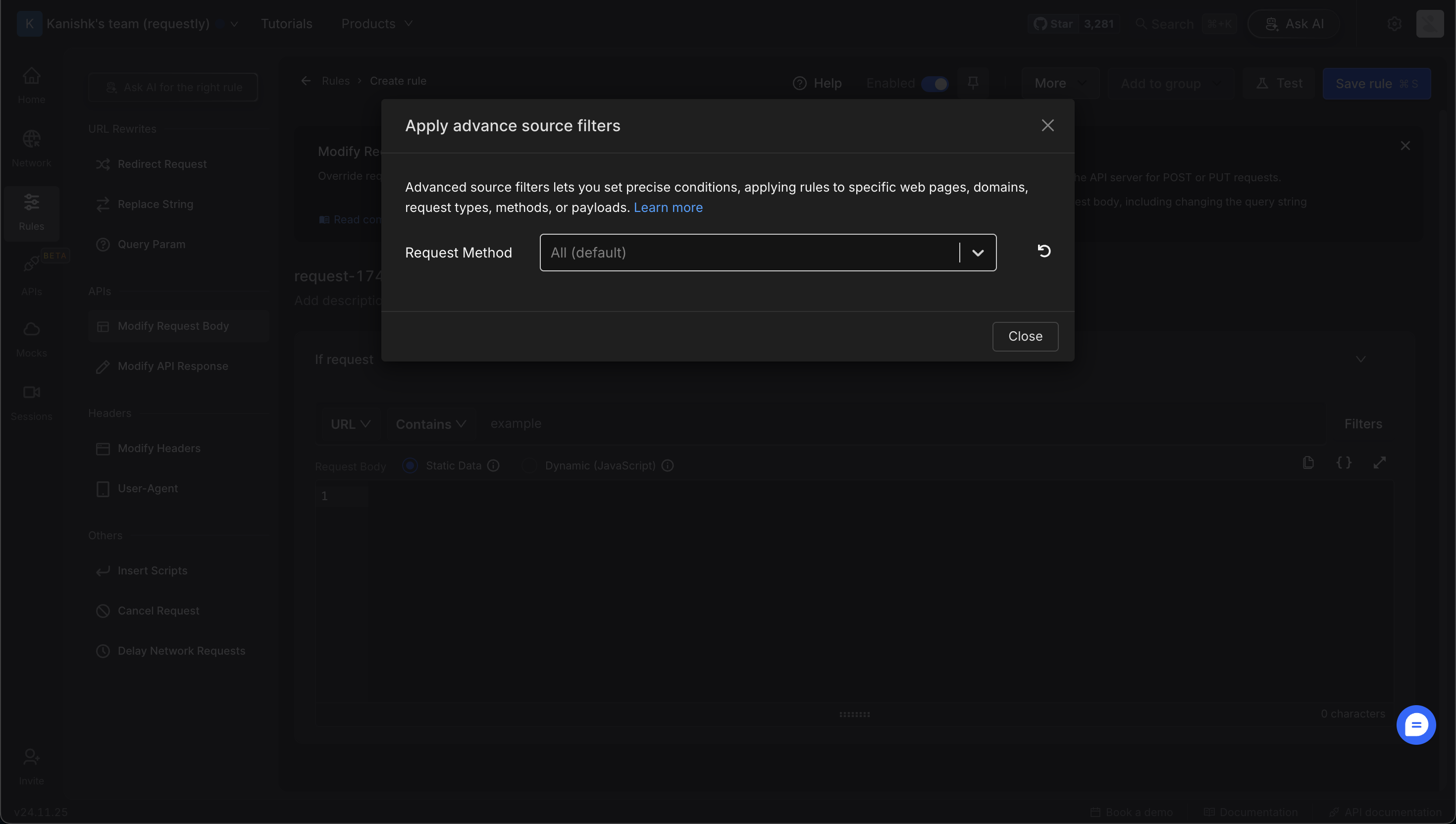 Only the Request Method filter is available for these rule types.Use it to precisely target requests based on how they’re made.