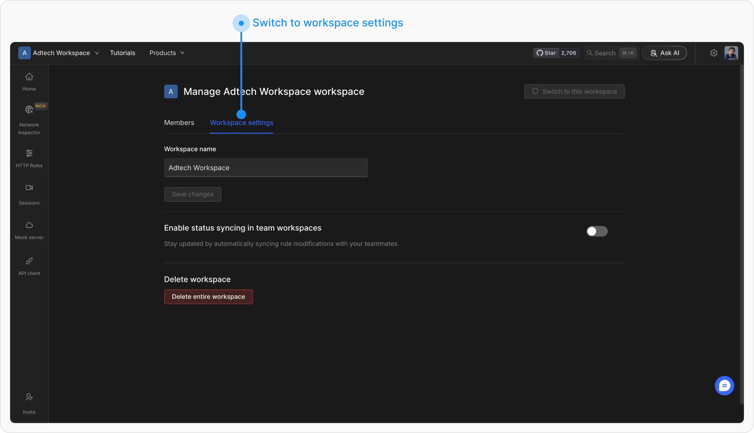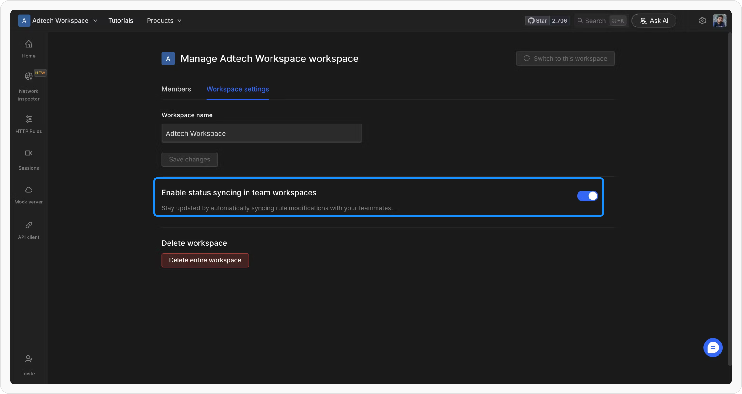 Rules status syncing can only be activated in team workspaces. To enable this setting, follow the steps below:Access the Workspace Management Settings