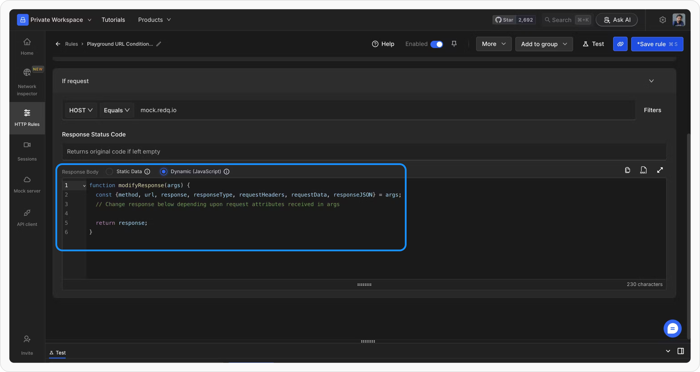 In the rule editor, select “Dynamic JavaScript Modification” to leverage