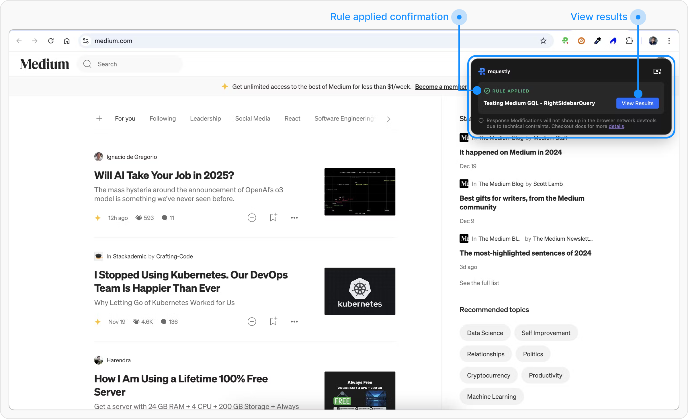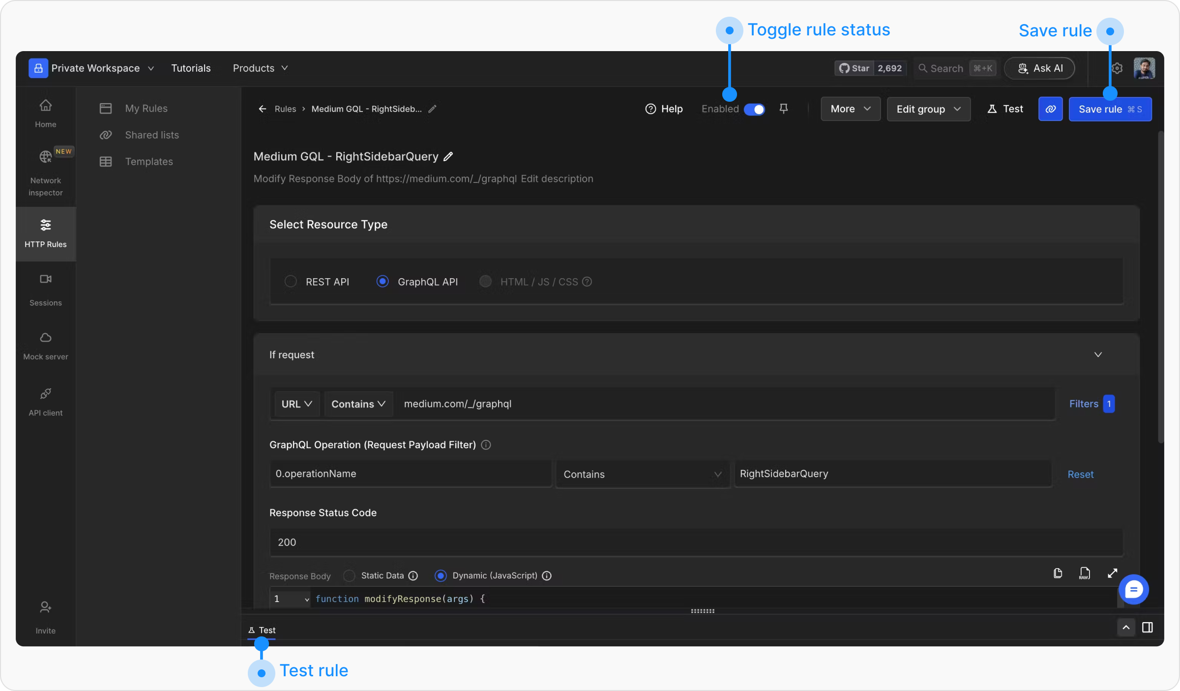 1. Real-Time Feedback: Instantly see how your rule affects the target webpage or API endpoint.