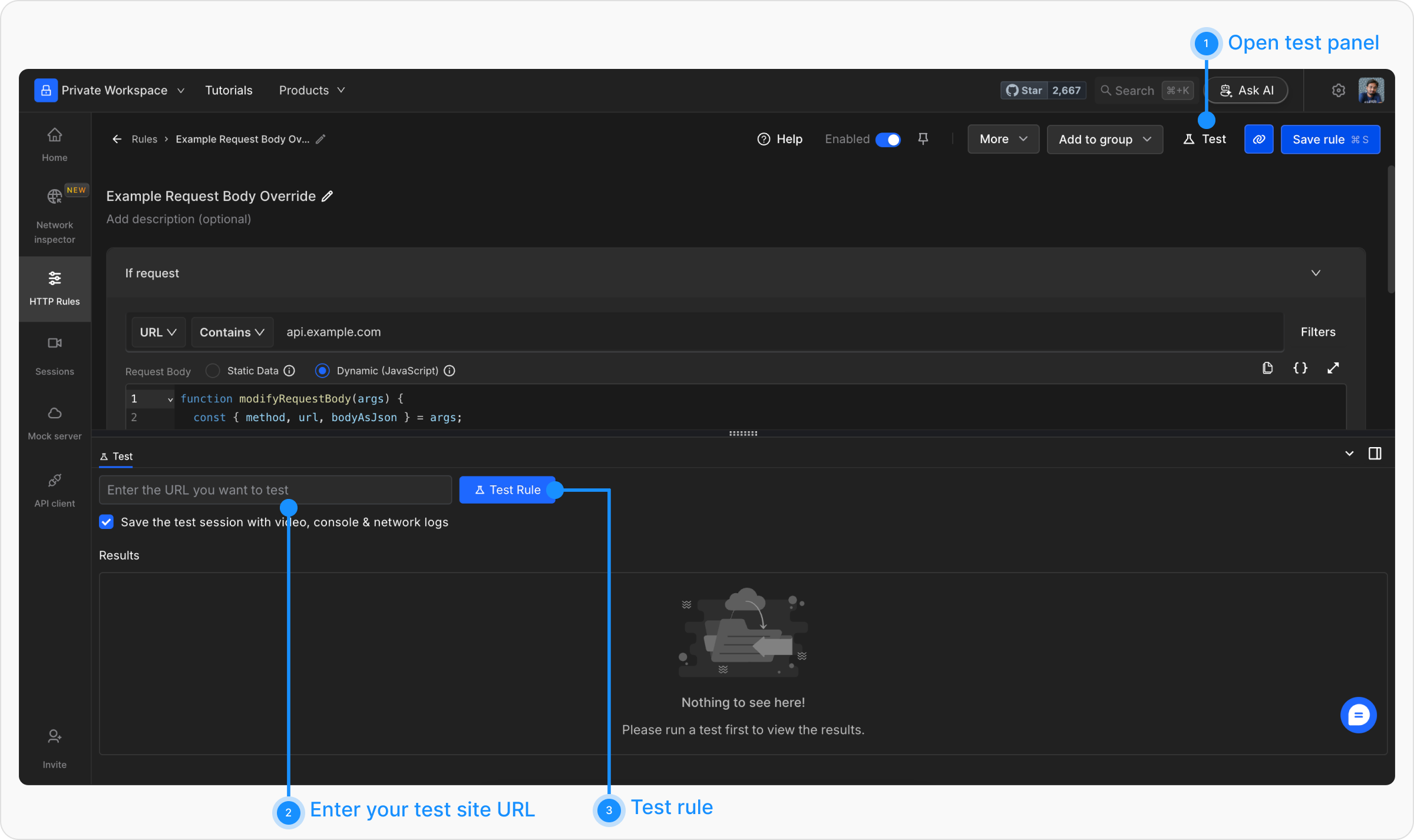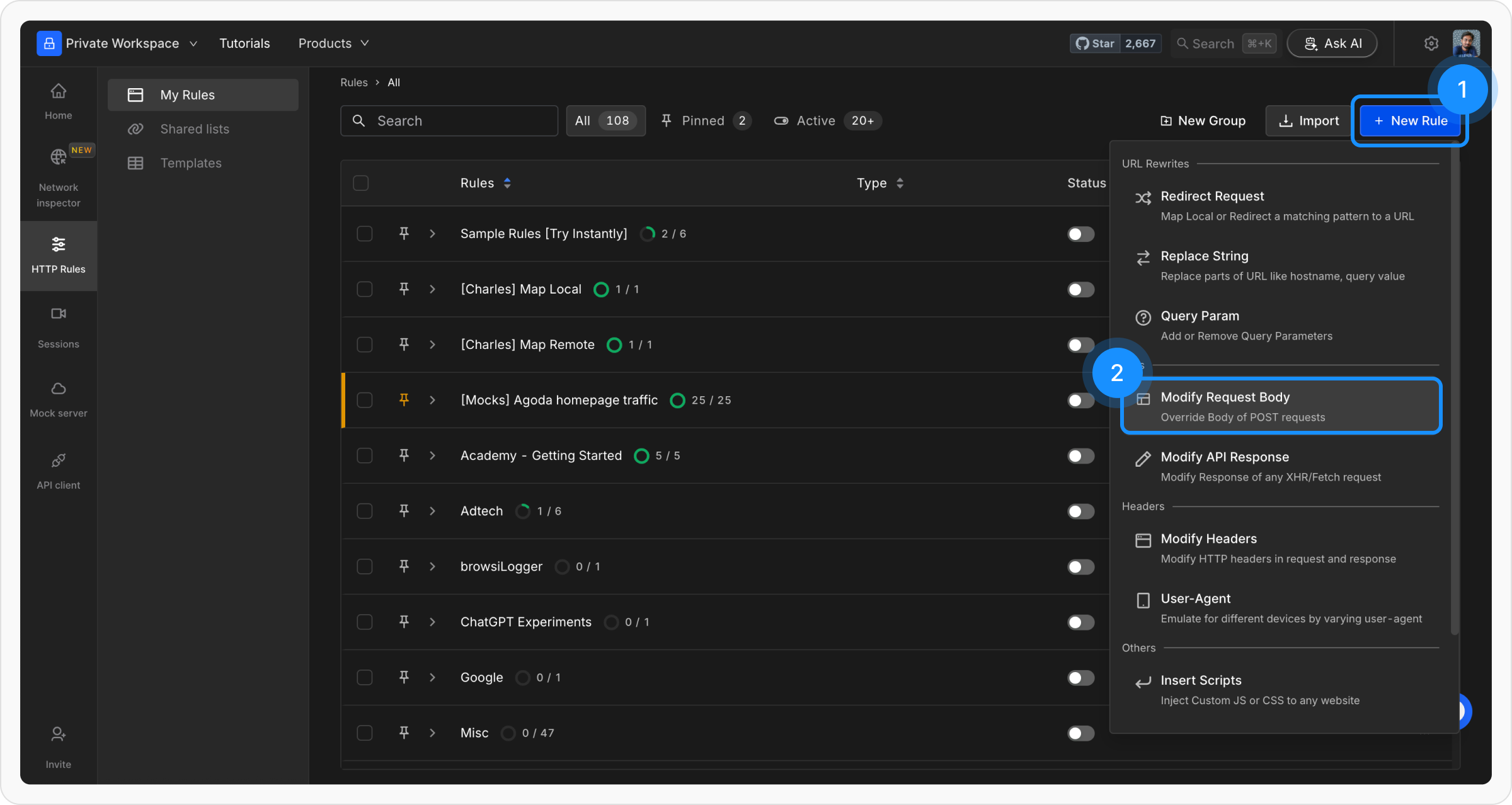 Navigate to the HTTP Rules tab in the web or desktop app. Click on