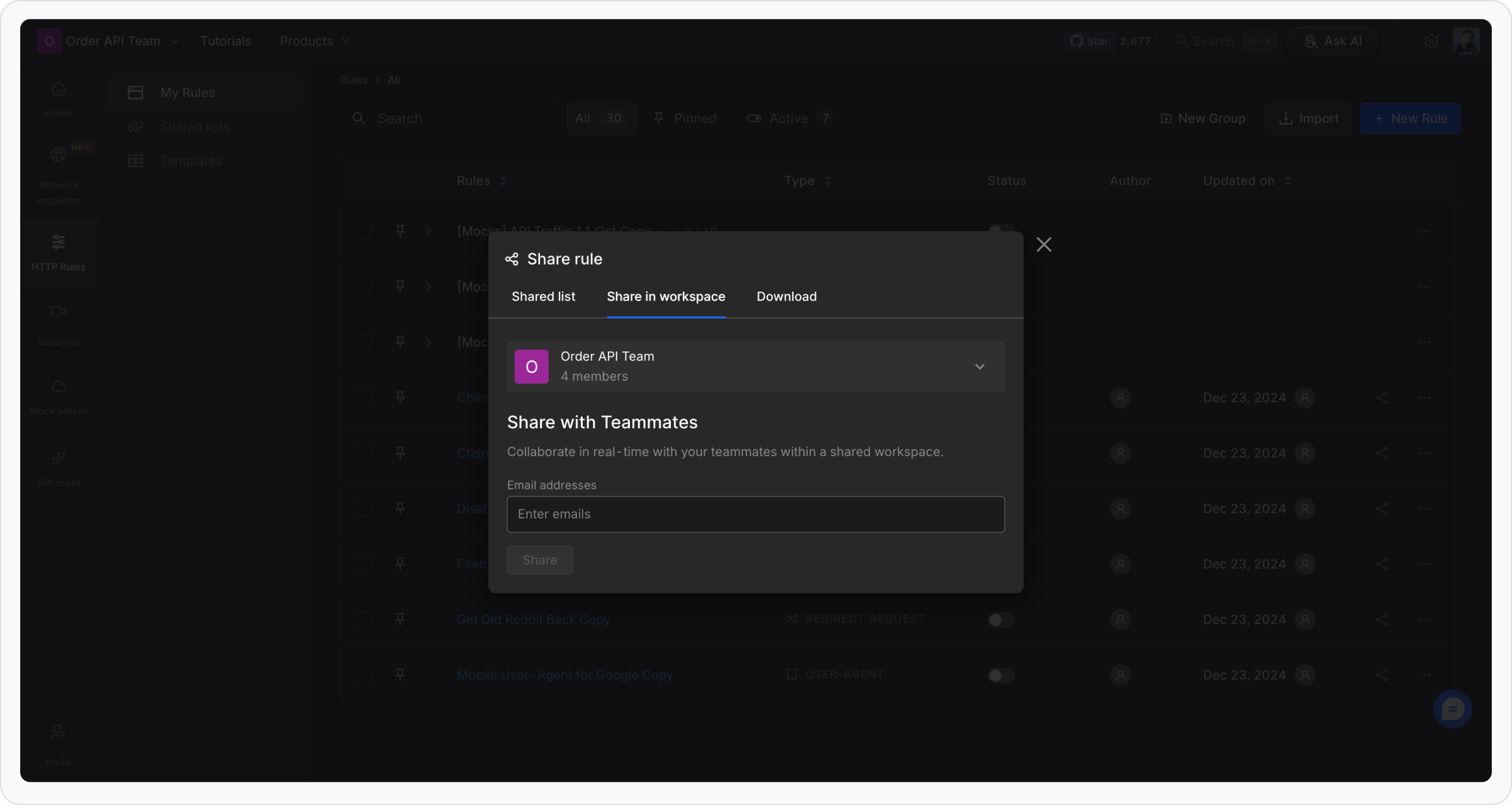 Team Workspace is a collaborative platform where team members can access, edit, and share rules in real-time. When you share rules in a workspace: