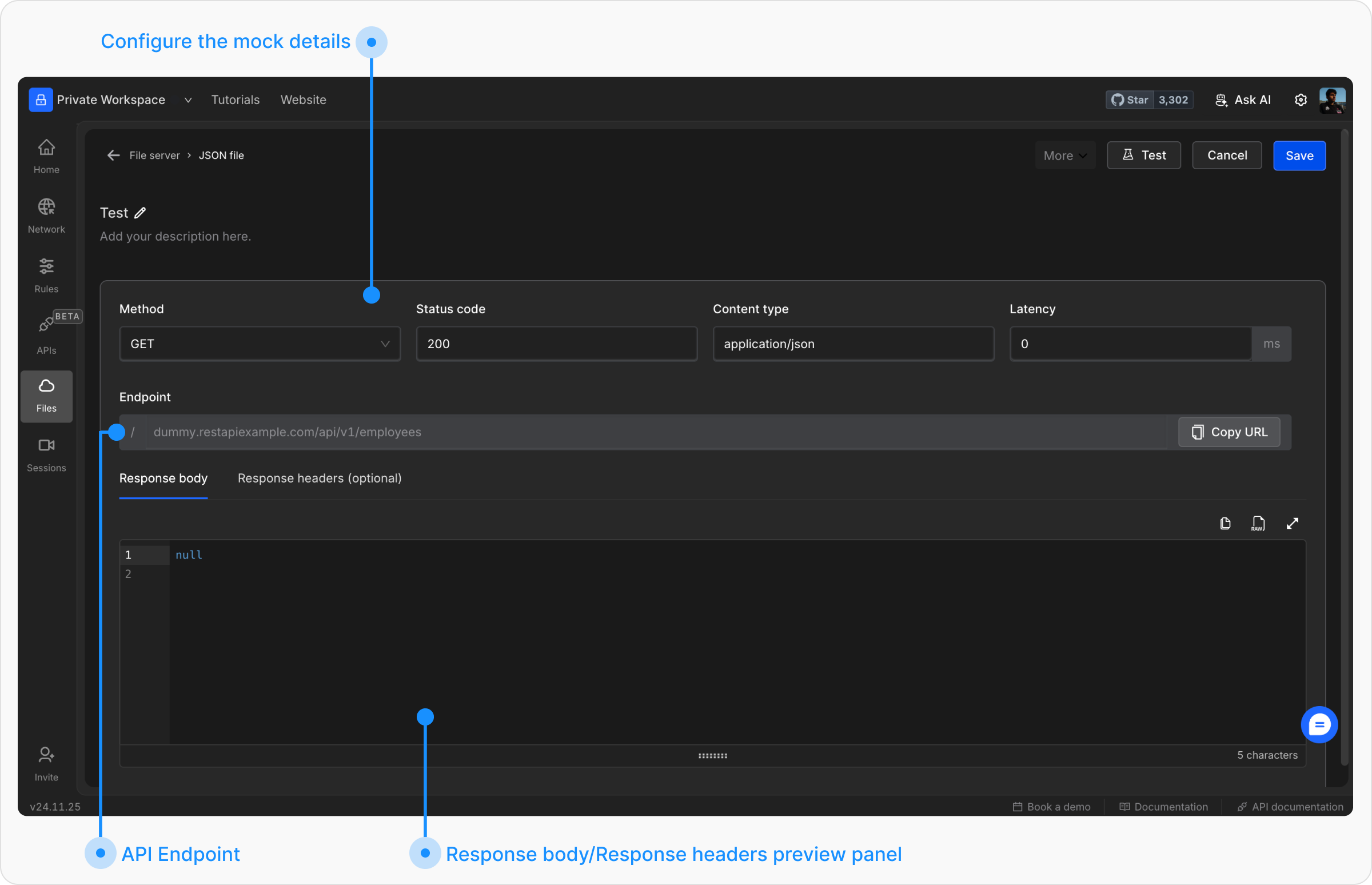 • Integrate the endpoint into your application to replace live API calls during testing.