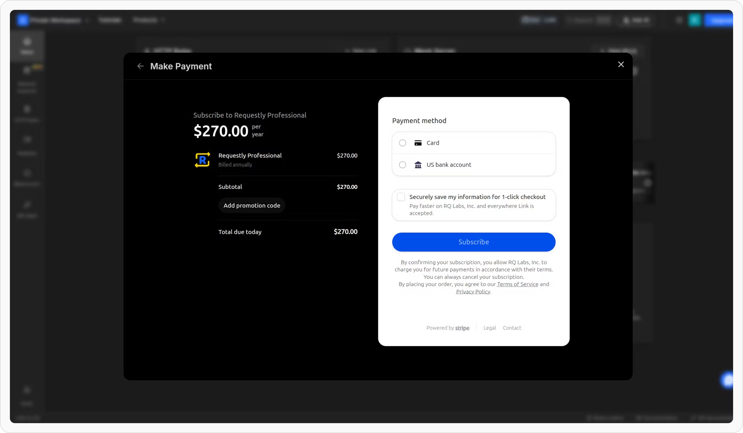 After selecting the number of seats, click the Upgrade button to go to the checkout page.