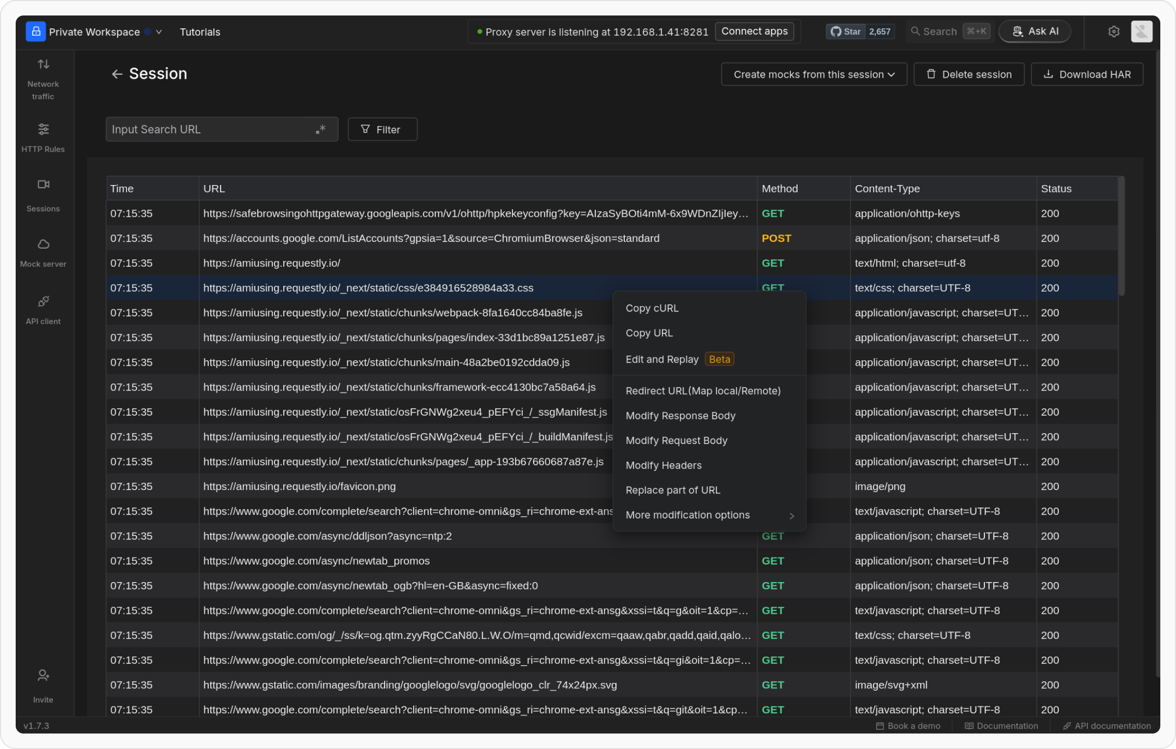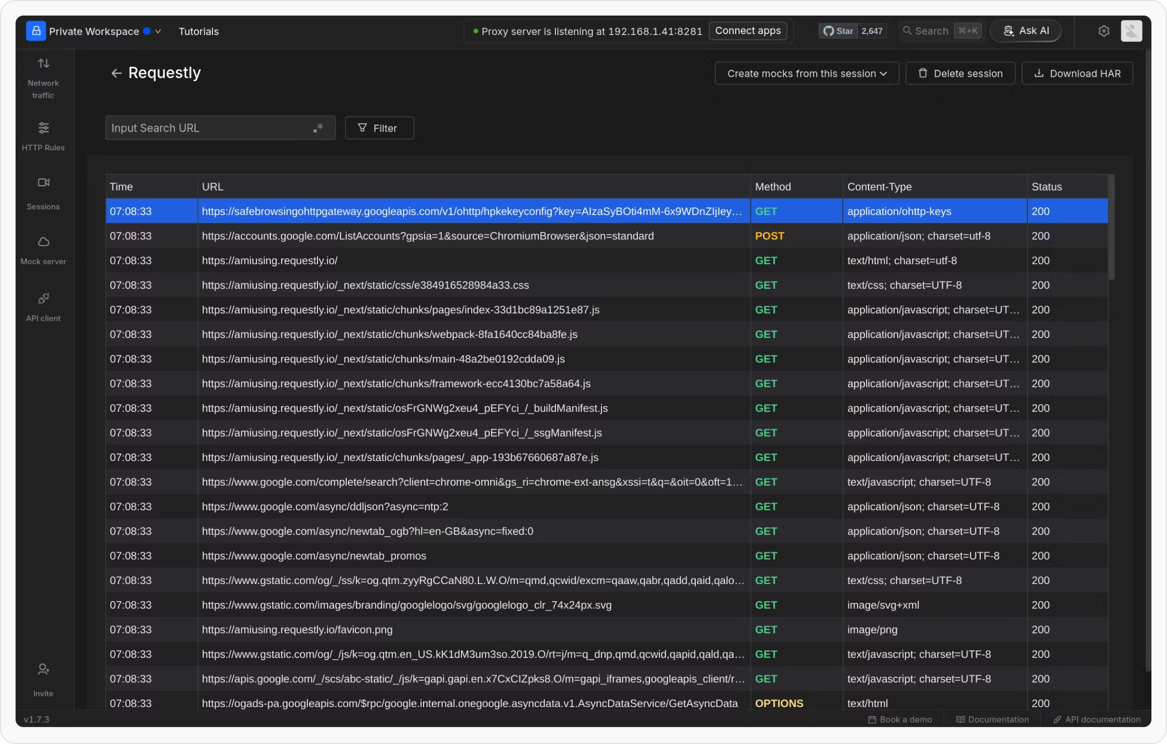Creating an API session in Requestly is straightforward, allowing you to record, import, and analyze network traffic with ease. Here are three methods to get started:Save Captured Live Traffic with HTTP Interceptor