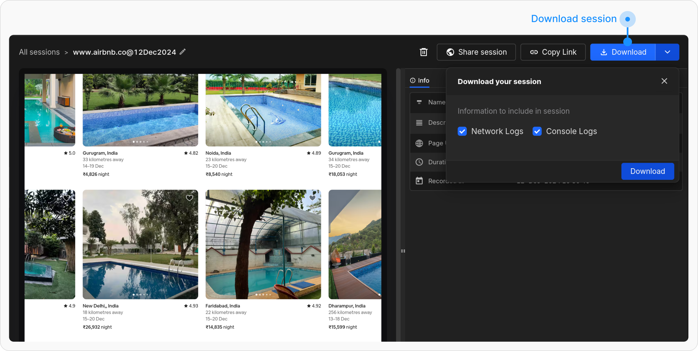 - Download HAR Files: Export HTTP Archive (HAR) files to analyze network activity and debug issues easily.