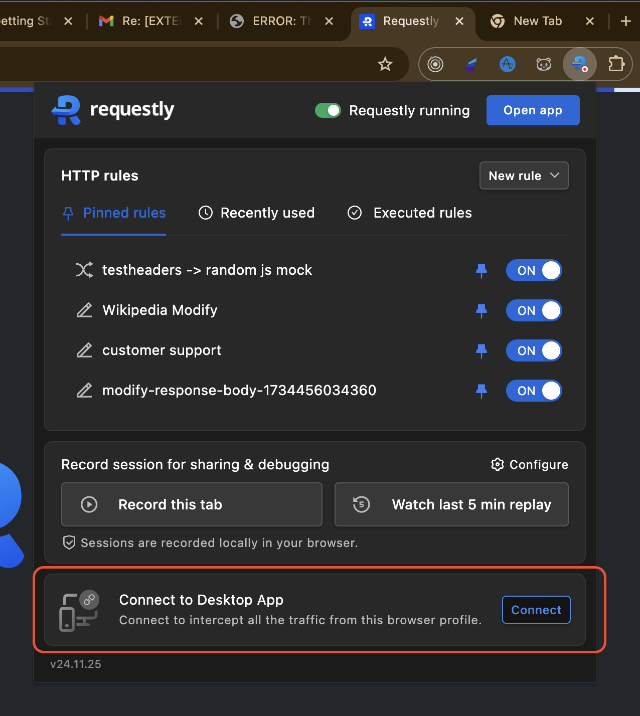If you have the Requestly extension installed inside your browser, you can connect that browser easily to the desktop app using the