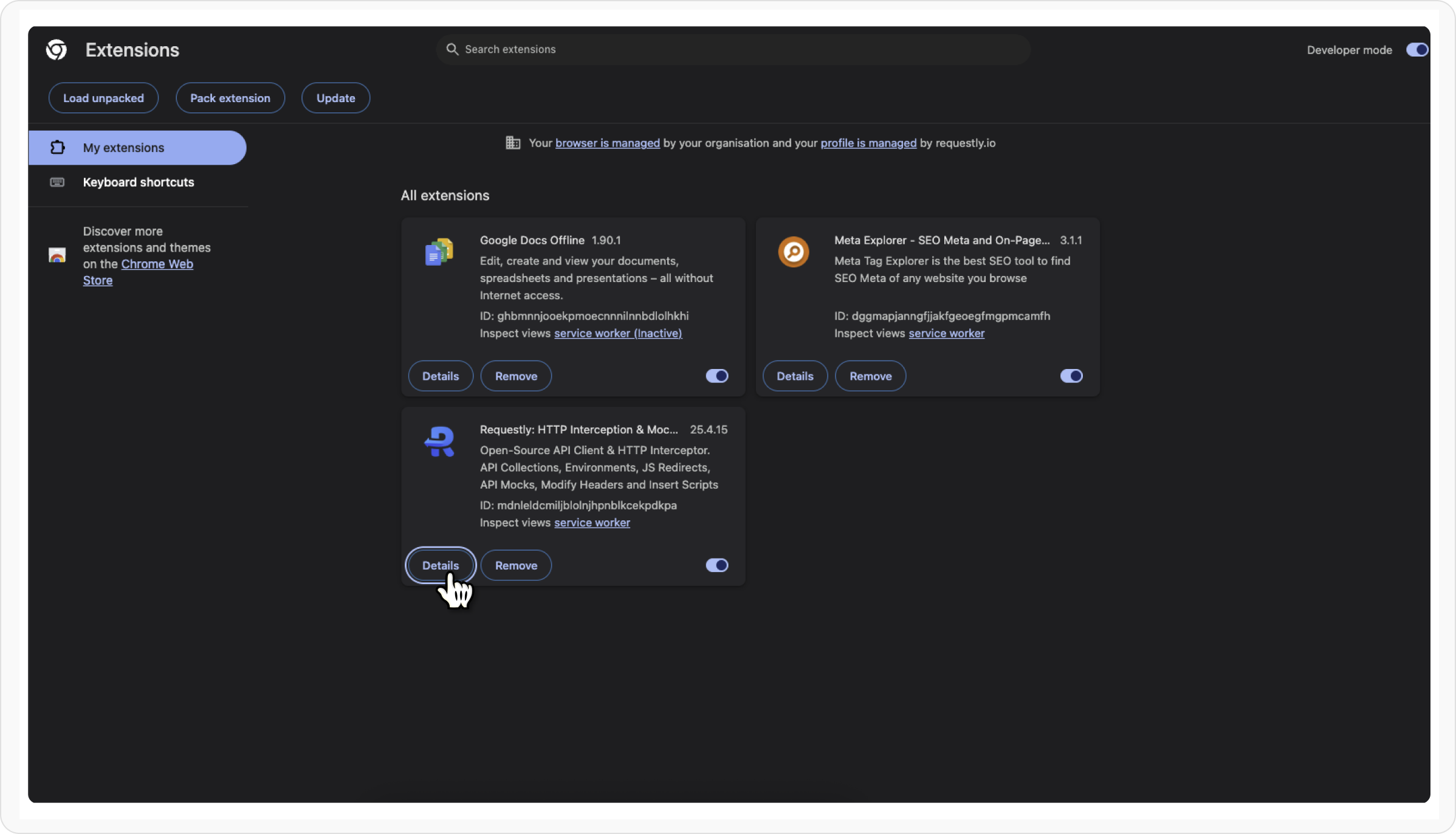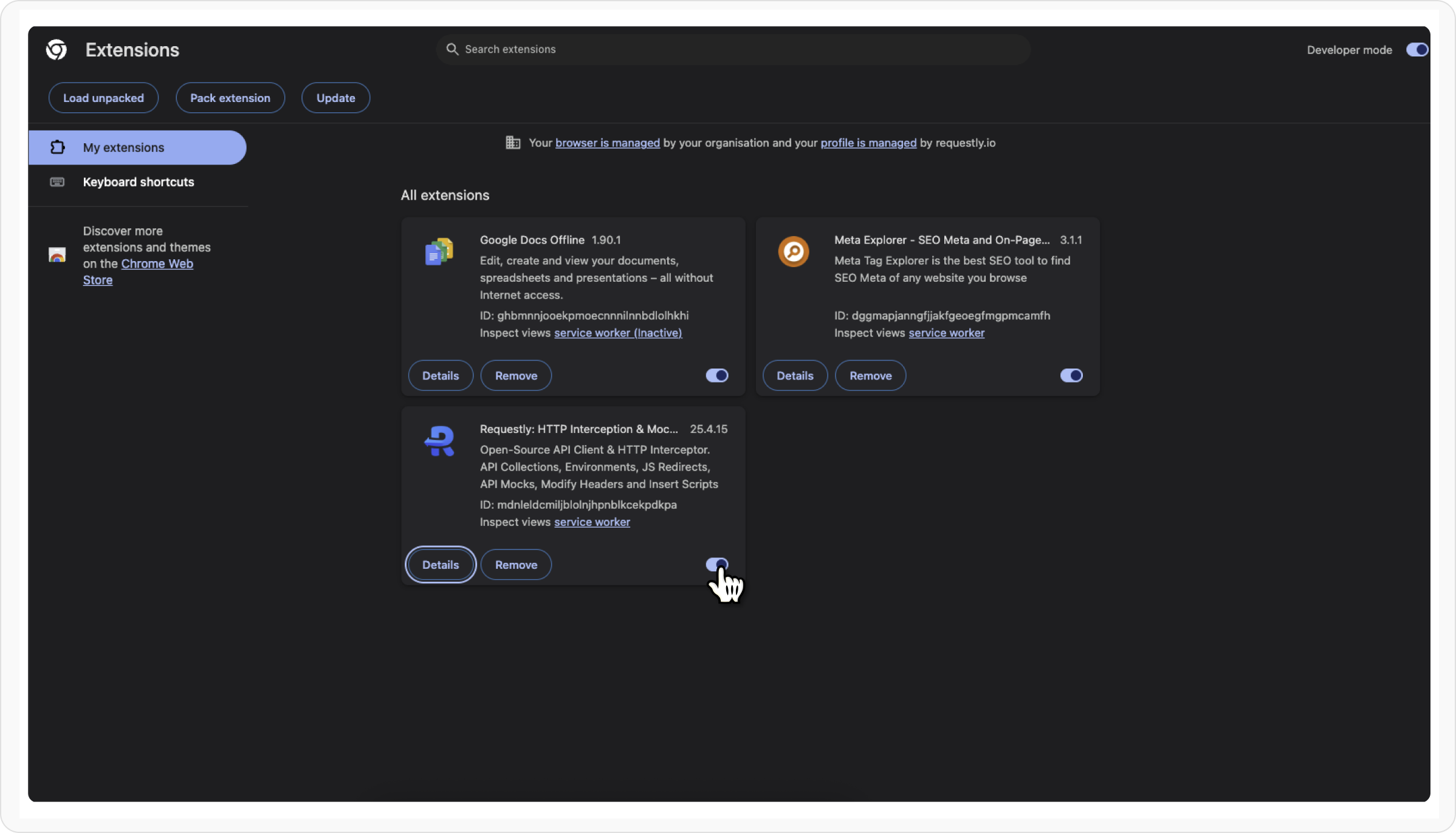 Find the Requestly extension and click Details.