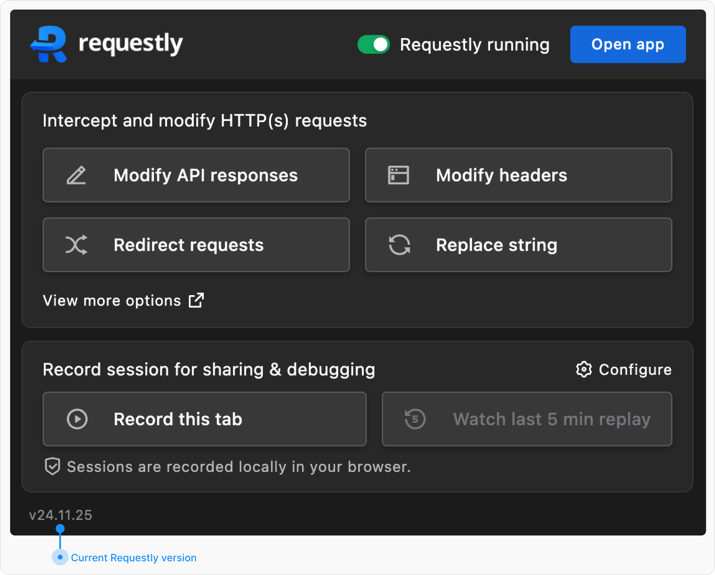 3. Look at the bottom-left corner of the popup to find your current Requestly version.
