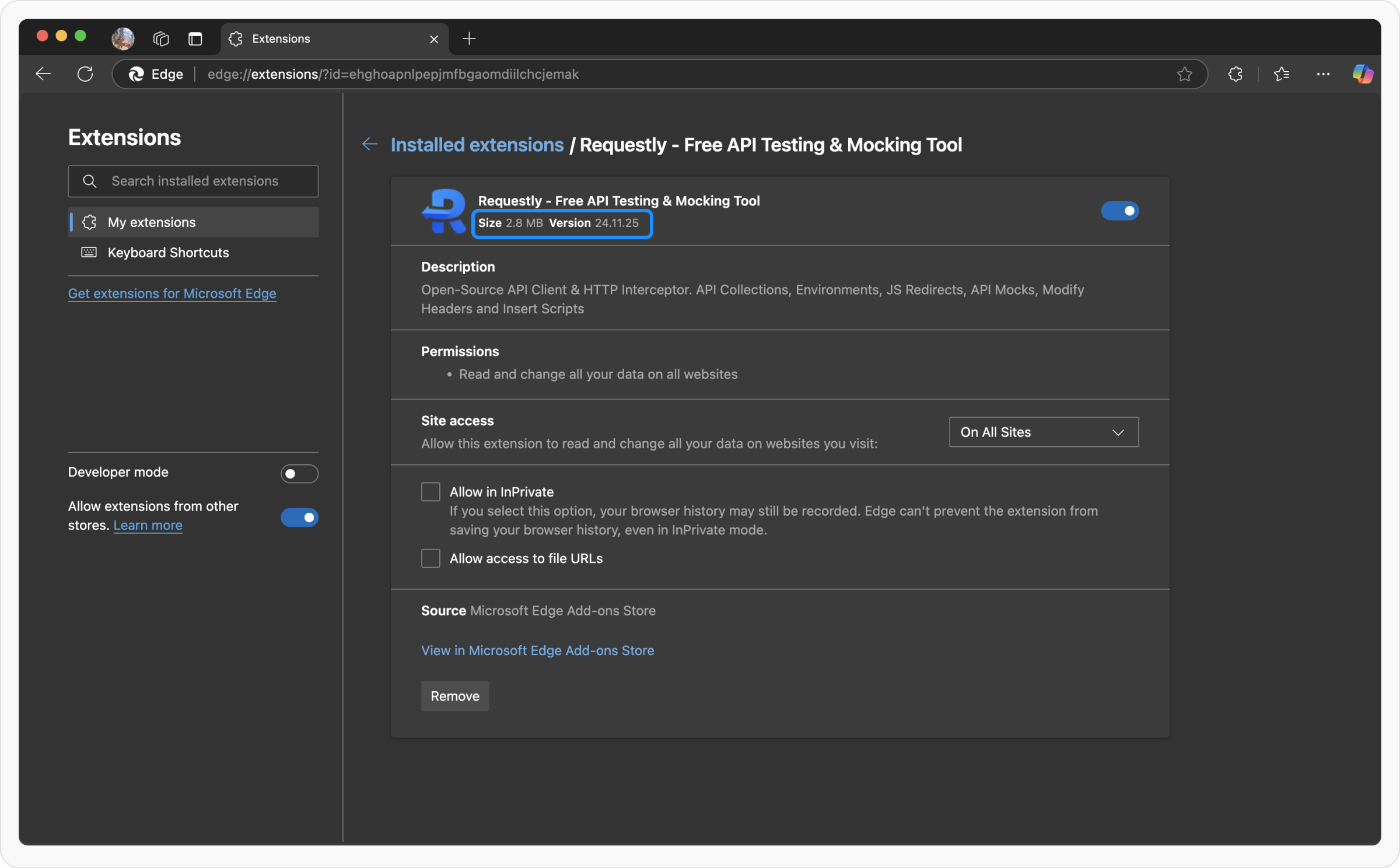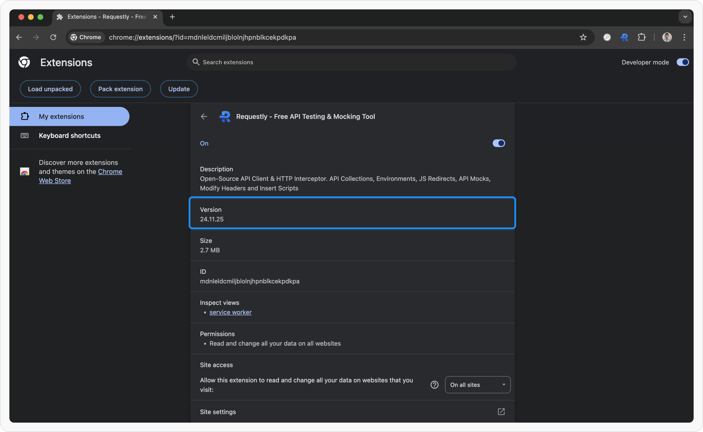 You can also find the Requestly version through your browser’s extension settings: